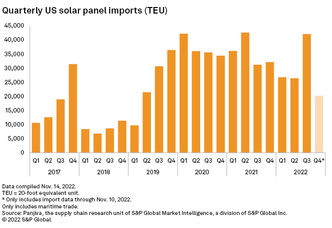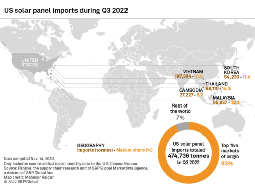 S&P Global analyzed U.S. solar panel imports since Biden’s two-year tariff waiver and found a dramatic spike in imported solar panels in Q3 2022. The number of shipping containers carrying solar panels to U.S. ports jumped 59% from Q2.
