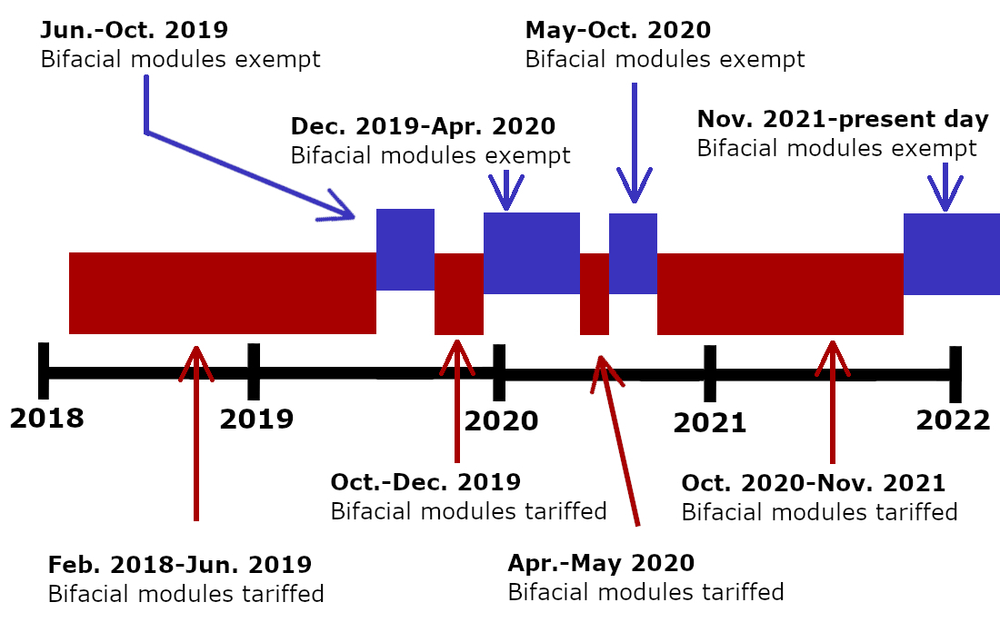 ” Then President Trump stepped in and removed bifacial’s exemption again in October 2020 through an executive order. Finally(ish), CIT reinstated bifacial’s exemption in November 2021 after determining the president’s executive order was unlawful.”