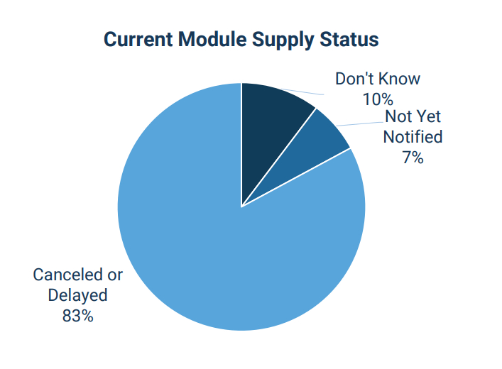 indication that your expected module supply has been delayed or canceled? (SEIA survey: April 26, 2022 with 730 responses)