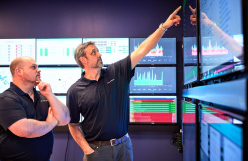 Jay Bellows (RIGHT), president of KORE Power, with Gregg Nobel, VP of sales and development, in the Network Operations Center at KORE Solutions.