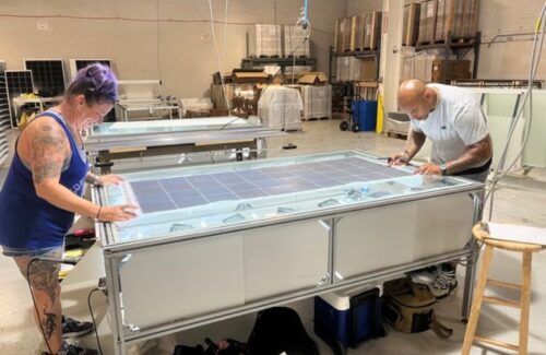 Manufacturing solar panels at Indiana-based Crossroads Solar.