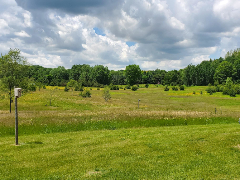 In 2016, Michigan Solar Solutions (MSS) purchased a former golf driving-range that had been abandoned for 10 years. The 35-acre property had in that time become a breeding ground for autumn-olive trees, a plant species invasive to Michigan. MSS has removed the autumn-olives from 30 acres and replaced them with native grasses and flowers with the goal of making the land a wildlife refuge.