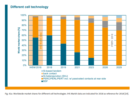 The 2019 “International Technology Roadmap for Photovoltaic” report expects HJT cells to gain a market share of 12% in 2026 and 15% by 2029 — a steady rise for a technology that just a decade ago was only used by Panasonic.