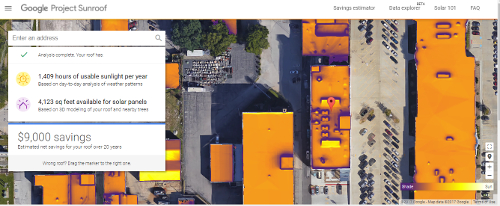 Google launches Project Sunroof, which uses Google Earth imagery to analyze roofs and local weather patterns to create quick solar plans for homeowners. This tool is an easy first introduction to the solar potential across the country.