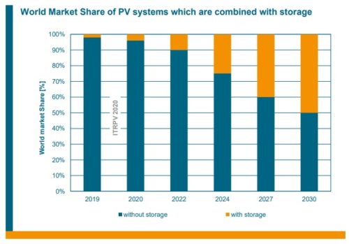 It’s a major win for solar + storage, another growing section of the market. ITRPV found that 4% of global solar PV projects in 2020 came paired with batteries, and the group expects 50% of projects will be solar + storage by 2030. Installer SunPower has already seen adoption rates of the combined technologies increase in the residential market.