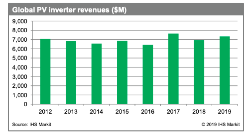 In IHS Markit’s “Predictions for the PV industry in 2019,” the group finds PV inverter suppliers are being forced to diversify to continue to battle against stagnating revenues. One way they can diversify is by selling battery-based inverters.