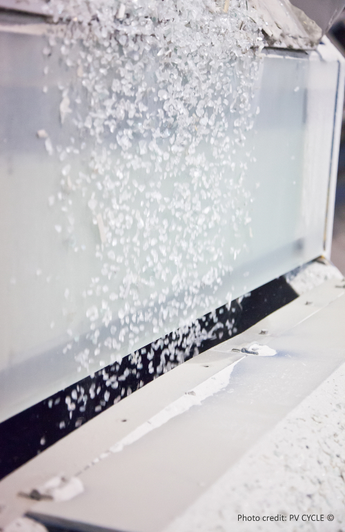 EPRI found that most panel recycling in Europe through the Waste Electrical and Electronic Equipment (WEEE) Directive—which established rules for solar panel recycling in 2012—happens at glass recyclers. Panels are crushed or shredded and then glass and metals are separated. Other chemical and thermal processes may be used to recover high-value material like silver or copper.