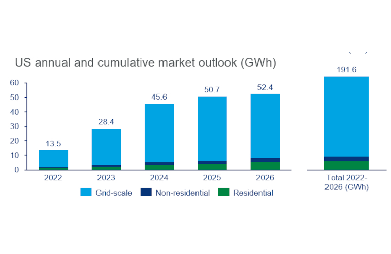 The U.S. Congress passed a solar investment tax credit (ITC) extension and standalone storage ITC as part of the Inflation Reduction Act. This critical piece of legislation will support all segments of the energy storage industry, increasing deployment of solar + storage systems while also incentivizing standalone facilities. As a result, Wood Mackenzie forecasts 59.2 GW of energy storage capacity to be added through 2026.