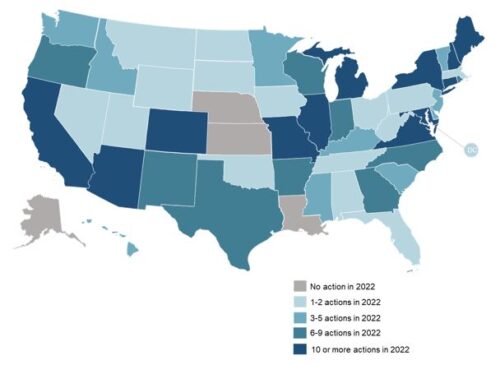 A total of 285 state and utility level distributed solar policy and rate changes were proposed, pending or decided in 2022. The report notes that ten of the most active states in 2022 for solar policy developments were: