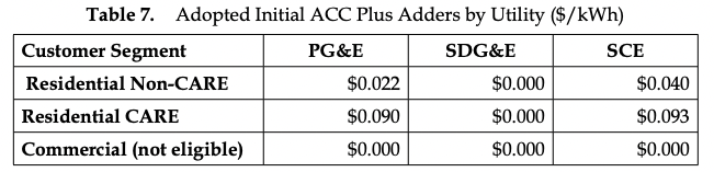 - Residential customers in PG&E and SCE territory receive avoided cost “adders” starting at 2 to 4¢/kWh to create this glide path. The adders decrease by 20% annually until they reach zero. In the final proposed decision, the PG&E adder was increased by less than half a cent, but others stayed the same
