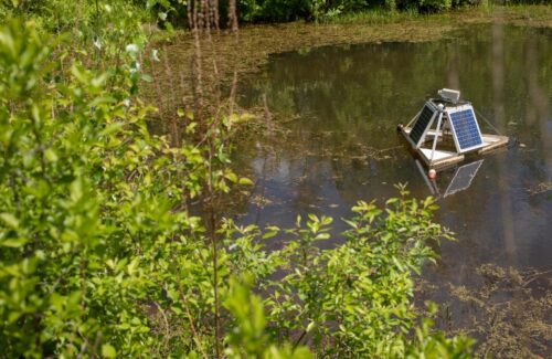“Pond Station” is one of several transmission arts installations that is powered by solar and predates Wave Farm’s on-site array. “Pond Station” transmits the submerged sounds of this pond using waterproof microphones. SunCommon