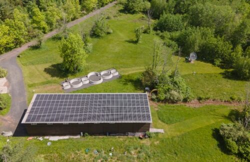 The organization broke ground on its Study Center in 2006 and completed the facility in 2012. The Study Center has housing for resident artists, a research library, a broadcast studio and offices, and was built with the goal of hosting Wave Farm’s long-sought solar project. In 2021, Wave Farm contracted Northeast solar installer SunCommon to design and construct a 48.6-kW array on the building.