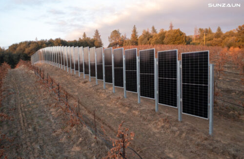 Agrisolar Clearinghouse published a case study about a Sunzaun installation on a vineyard in California, explaining the system’s benefits for a farm. In addition to its agricultural applications, the Sunzaun is also suitable for a range of other environments such as along highways, next to railways, as a fence for property like residential buildings or public spaces, and any environment that can benefit from the small spatial footprint of the vertical design.