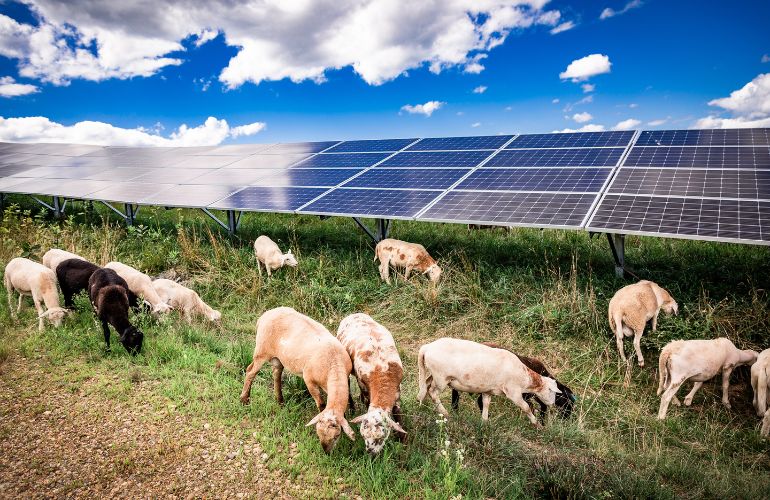 It’s becoming more common for solar farms to incorporate native grasses or pollinator-friendly plants with solar panels. Attracting pollinators can increase yields on farms with solar installations and even on neighboring farms, benefitting the larger community. Livestock grazing can also be combined with solar farms, helping maintain the vegetation while providing some shade for the animals.
