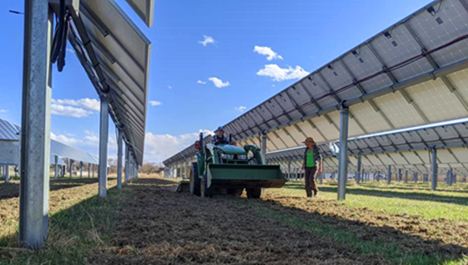 Sprout City Farms, a nonprofit farming organization responsible for managing the crop production underneath the solar arrays at Jack’s Solar Garden in Colorado, doing an initial tilling underneath the solar panels.