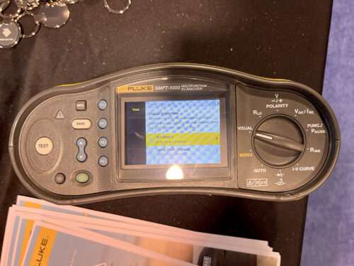 Fluke’s new Solar Multifunction Tester combines the functions of six different solar O&M tools into one. The tester has a built-in IV curve tracer that displays on-screen, rather than the old method of displaying it on a separate PC screen. It comes in a kit with the company’s solar irradiance meter, both of which fit snugly in the included custom backpack.