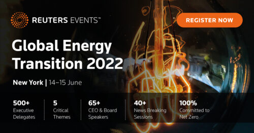 Over 500 energy, business and industrial leaders from the world’s largest organizations will come together in New York on June 15 for the Reuters Events Global Energy Transition 2022, where they will discuss the urgent need to decarbonize global energy production and deliver strategies to drive decarbonization across the energy and industrial industries.