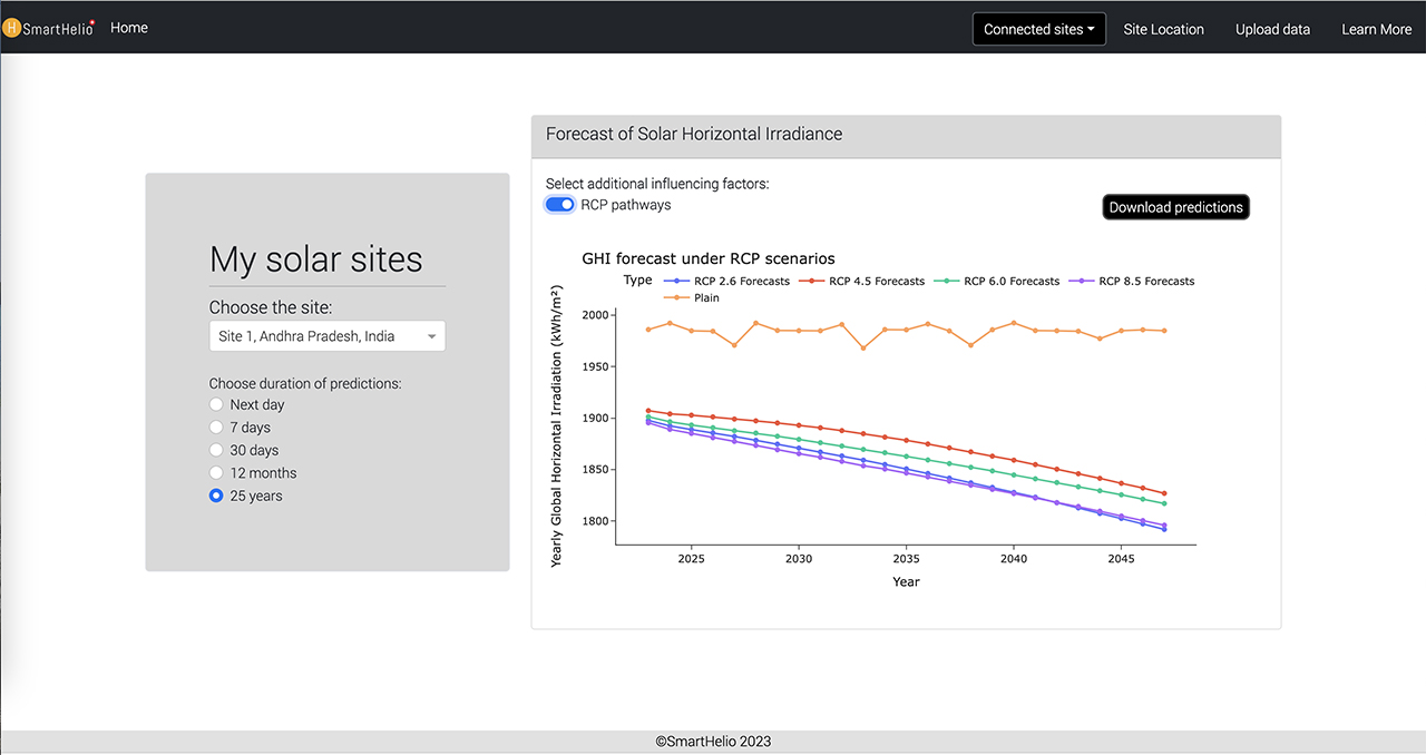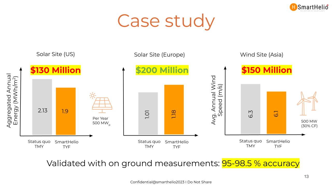 Solar assets built after 2015 are underperforming by 8% and there are two main factors impacting underperformance: inaccurate forecasting leading to climate-sensible plant design, and late faults identification resulting in system downtime. The consequences can lead to substantial financial losses for investors and hinder the growth of solar energy as a viable alternative energy source. SmartHelio’s proprietary software utilizes in-house climate risk factors for forecasting and physics-informed AI algorithms to predict failure in real time. Leveraging API intelligence from existing solutions (CMS, SCADA, weather stations, etc) not only de-risks solar investment but also maximizes ROI for the investors which would, therefore, accelerate solar adoption, in the USA and worldwide.